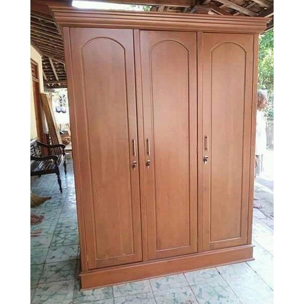 Kami juga menyediakan jasa pelayanan pemesanan produk furniture selain dari produk furniture yang kami buat. Kami bisa menerima pesanan lemari dengan ukuran 2 pintu atau 3 pintu bahkan 4 pintu atau. Lemari minimalis sliding pintu 3 yang sangat cocok untuk kamar tidur 3×3 ini dibalut dengan finishing spray dari kompresor dengan bahan melamin yang tidak akan menghilangkan serat asli kayu jati namun menutup pori kayu sehingga hasilnya sangat halus dan aman. Lemari 3 pintu kayu jati. Jika jumlah pakaian anda banyak, sebaiknya pilih yang yang 3 pintu, karena untuk mengambil pakaian yang anda inginkan, anda tidak perlu membuka ketiga pintunya.
